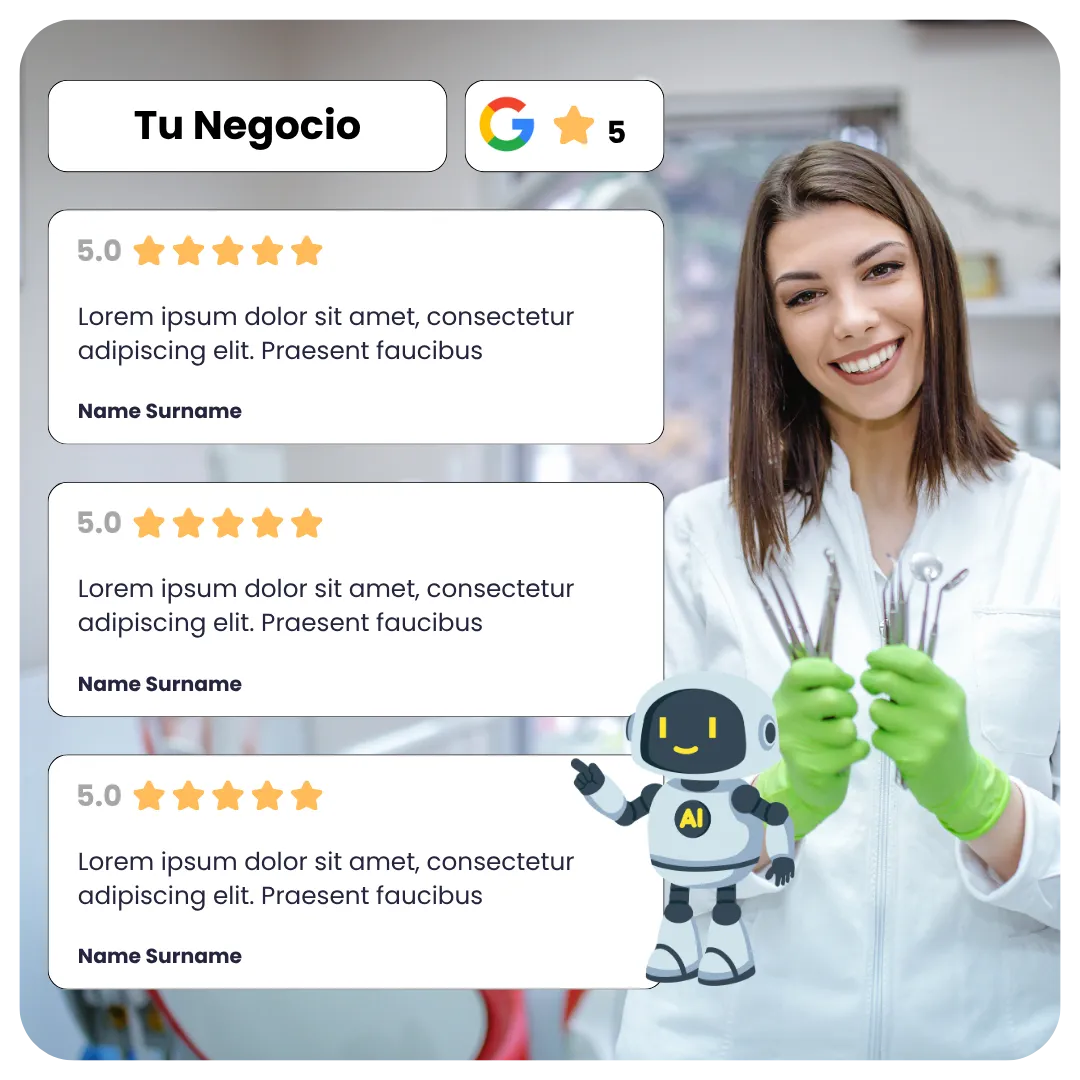 En EscalaConIA te ayudamos a Incrementar y Automatizar tus Reseñas en Google Maps y repostear automáticamente las mejores reseñas en tu Facebook y en tu Página Web.